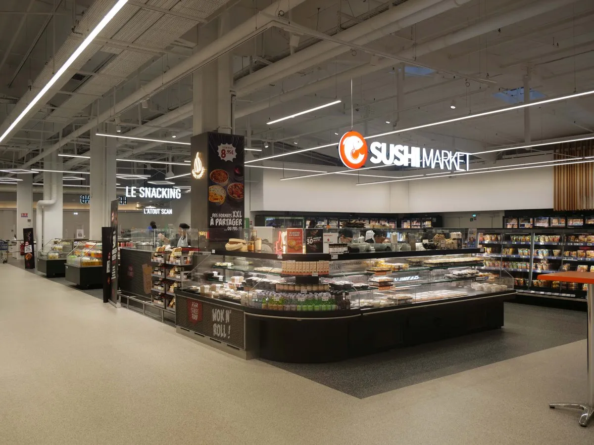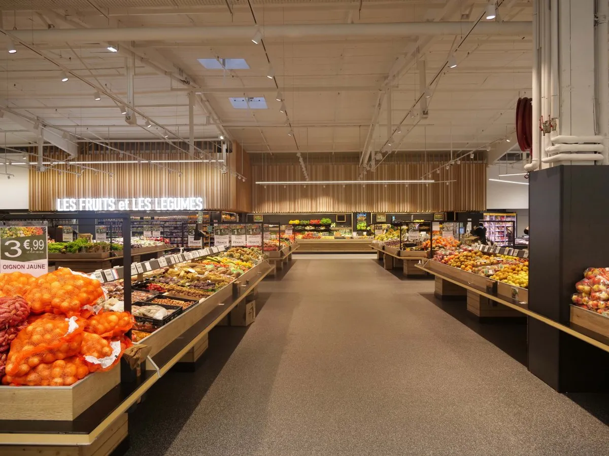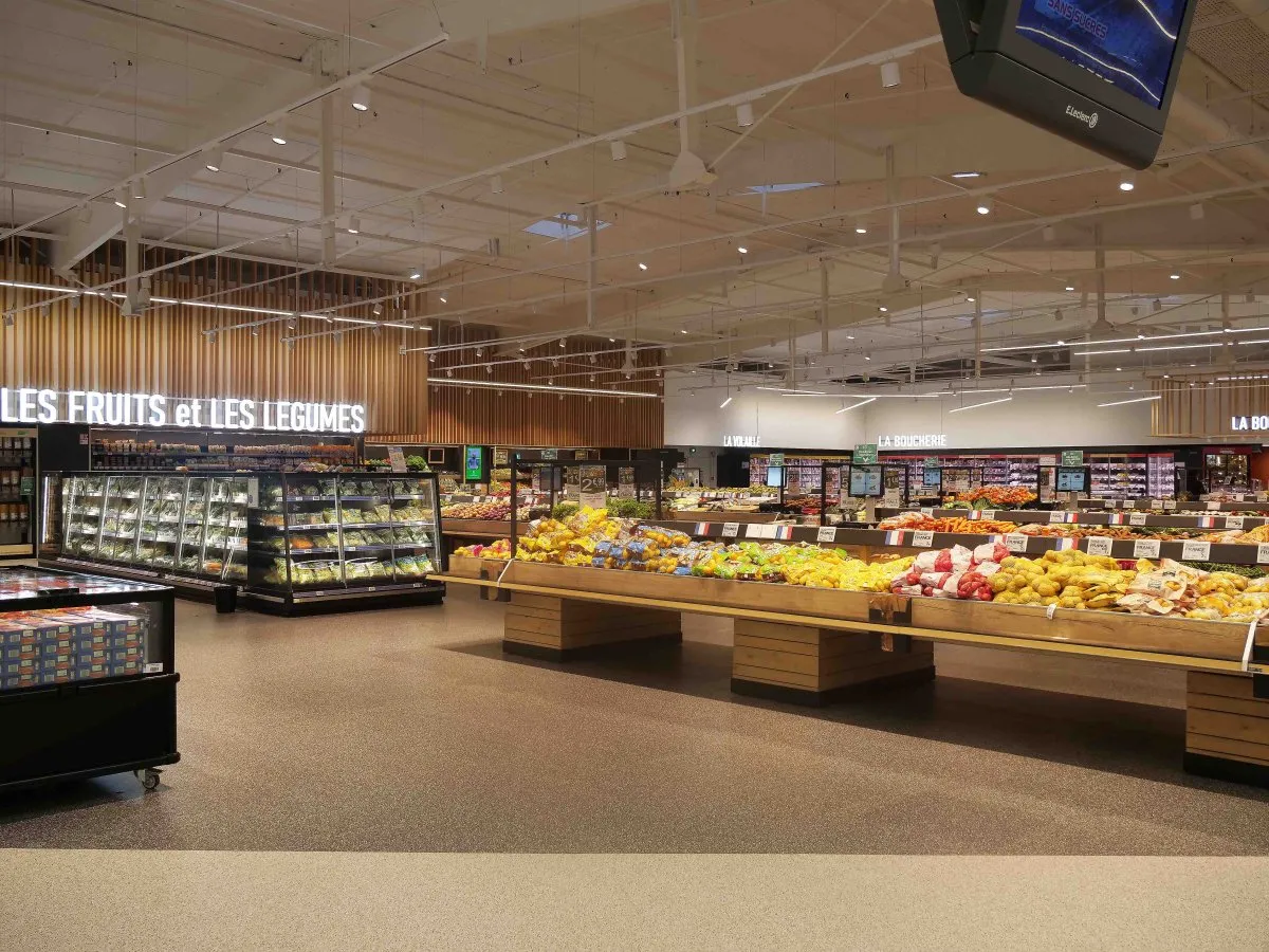 Le E. LECLERC Atout Sud de Rezé, situé à proximité de Nantes, a terminé ses travaux de Remodeling. Dans sa nouvelle configuration, cet Hypermarché d’une surface de 11 000 m² propose un circuit d’achat optimisé avec deux entrées dont une ouvrant sur une zone produits frais regroupant tous les rayons métiers, articulés autour d’un grand rayon Fruits et légumes et accordant une place importante au Frais-Emballé.
