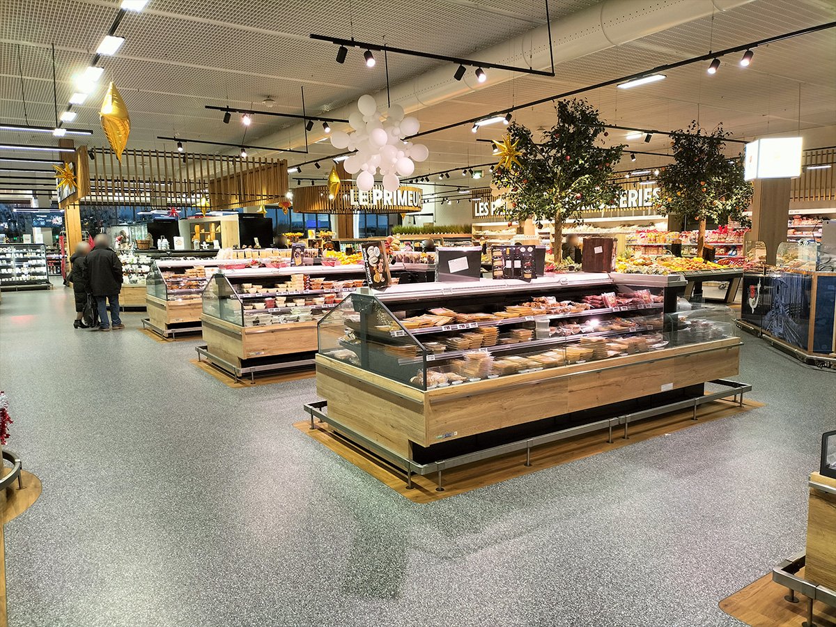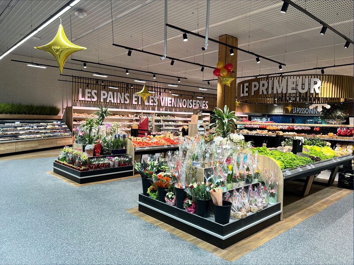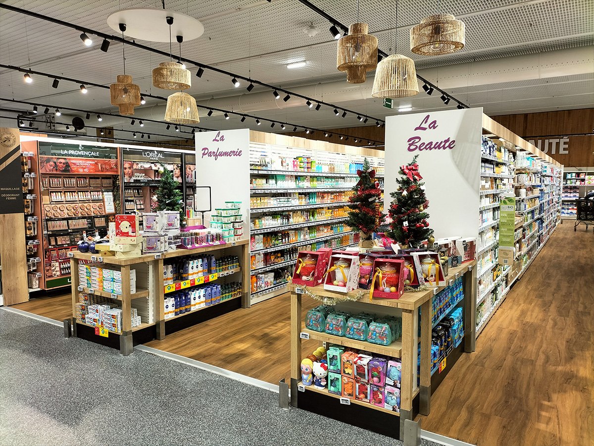 L’INTERMARCHE de ST AMAND MONTROND (dpt 18) a finalisé ses travaux de remodeling. Sur une surface d’environ 4 000 m², l’adhérent, Sébastien PILLARD, a mis en œuvre un projet mettant particulièrement en avant toutes les offres métiers, ainsi que l’animation événementielle et thématique. Une seconde entrée, couplée à un stand Snacking traditionnel, a été créée pour faciliter le circuit clients. Les spécificités techniques du bâtiment ont été prises en compte d’un point de vue conceptuel et intégrées dans un projet décoratif réussi. Les premiers avis des clients sont très positifs. Toute l’équipe SKS est fière d’avoir accompagné ce magasin dans la conception commerciale de la surface de vente et félicite Sébastien PILLARD et ses équipes pour cette réalisation.