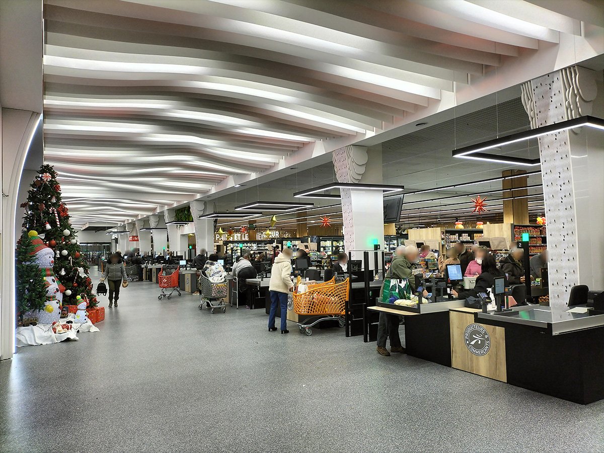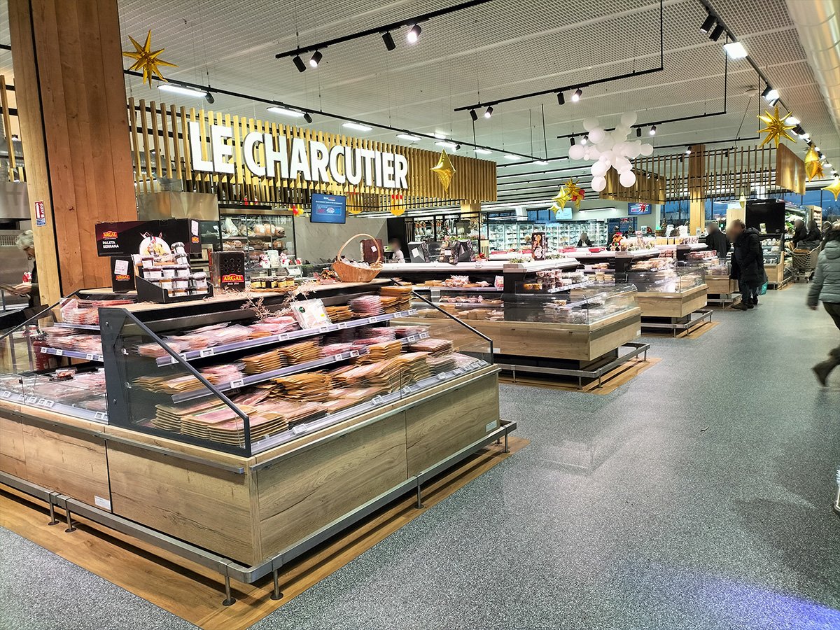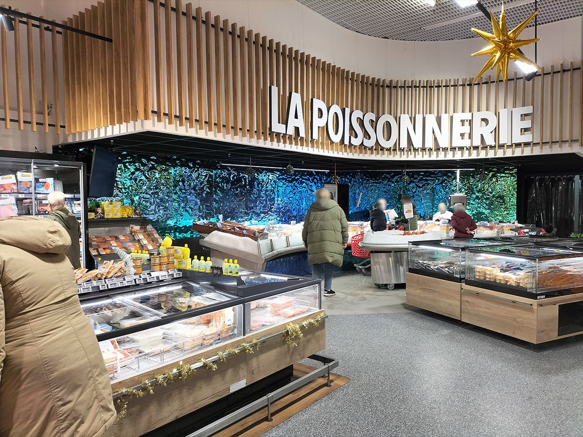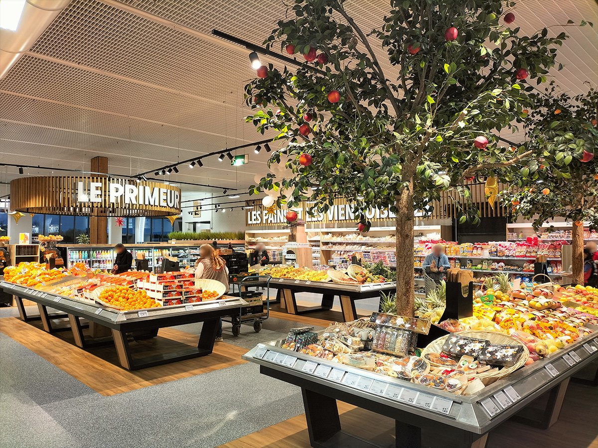 L’INTERMARCHE de ST AMAND MONTROND (dpt 18) a finalisé ses travaux de remodeling. Sur une surface d’environ 4 000 m², l’adhérent, Sébastien PILLARD, a mis en œuvre un projet mettant particulièrement en avant toutes les offres métiers, ainsi que l’animation événementielle et thématique. Une seconde entrée, couplée à un stand Snacking traditionnel, a été créée pour faciliter le circuit clients. Les spécificités techniques du bâtiment ont été prises en compte d’un point de vue conceptuel et intégrées dans un projet décoratif réussi. Les premiers avis des clients sont très positifs. Toute l’équipe SKS est fière d’avoir accompagné ce magasin dans la conception commerciale de la surface de vente et félicite Sébastien PILLARD et ses équipes pour cette réalisation.