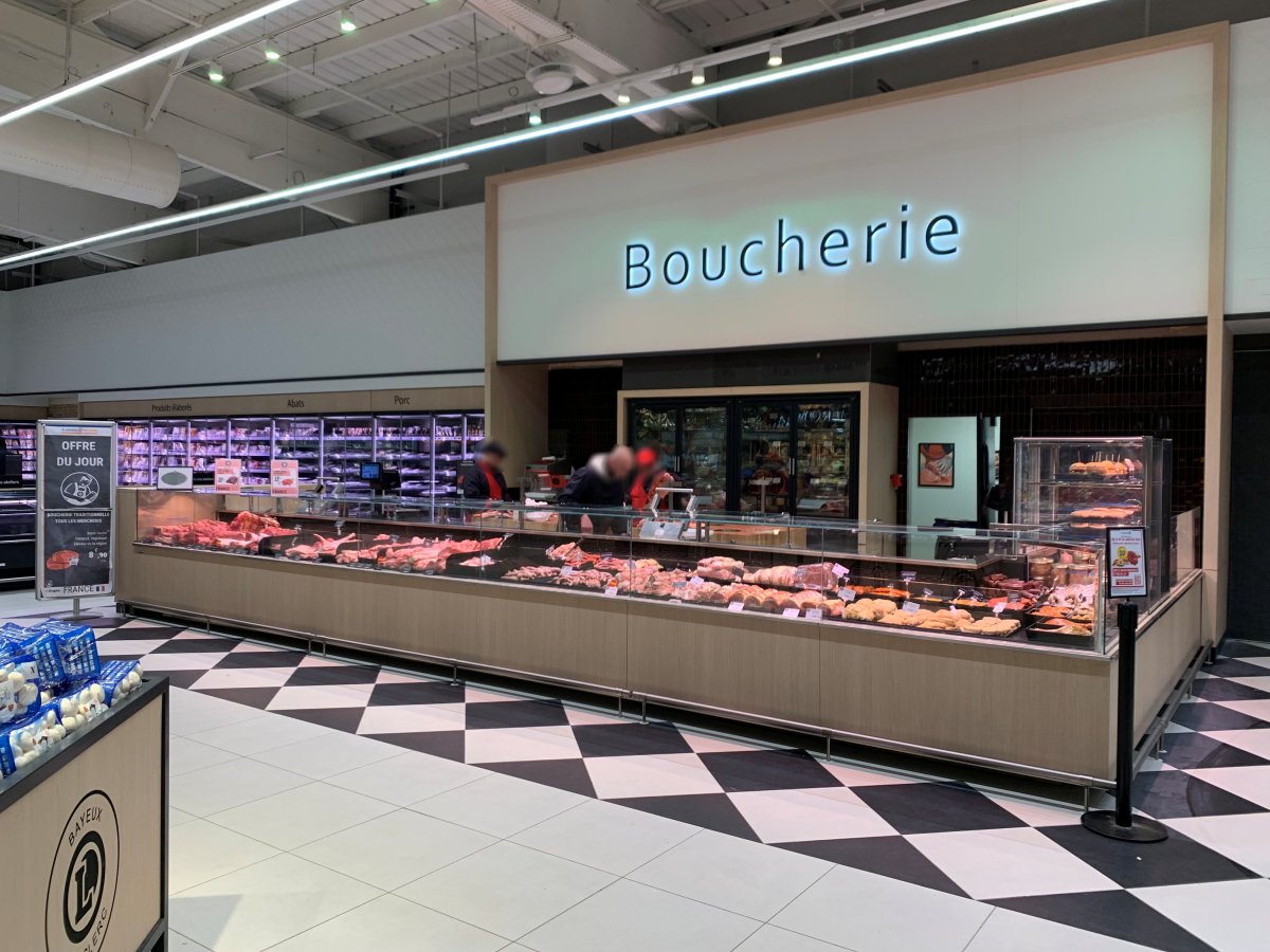 La création d’une seconde entrée permet désormais d’orienter rapidement les clients vers la zone métiers, cœur de l’offre alimentaire. Les différents univers s’y dévoilent avec de nouvelles perspectives qui valorisent le savoir-faire des équipes, aussi bien sur les rayons traditionnels que sur le frais emballé.
