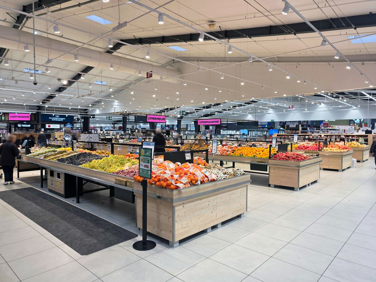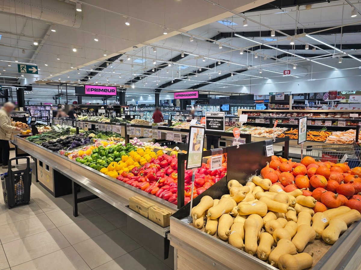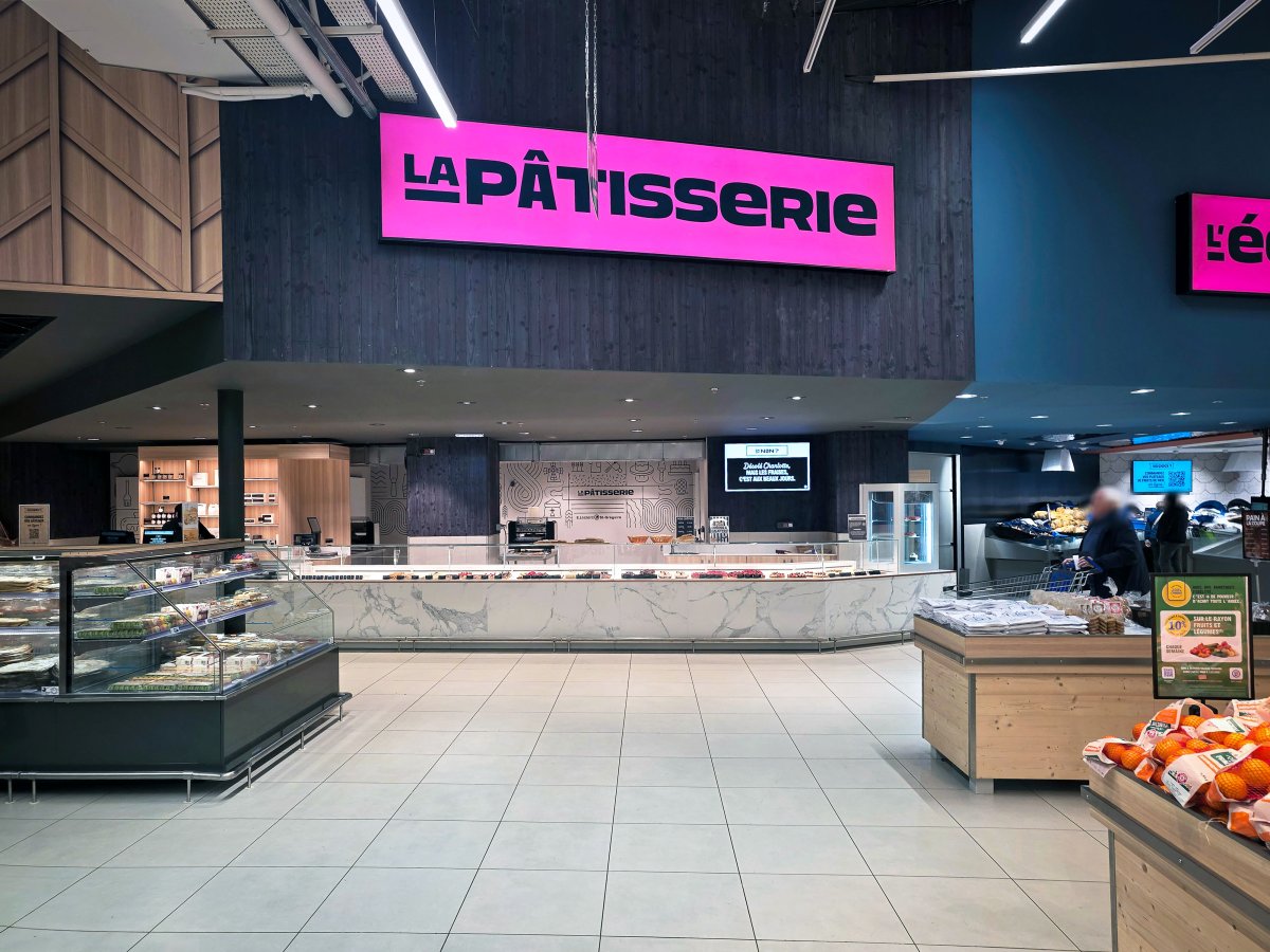 La vaste zone métiers, au cœur du magasin, met en valeur les rayons traditionnels et frais emballés. Chaque espace a été réfléchi pour faciliter l’orientation des consommateurs et proposer des offres différenciantes.